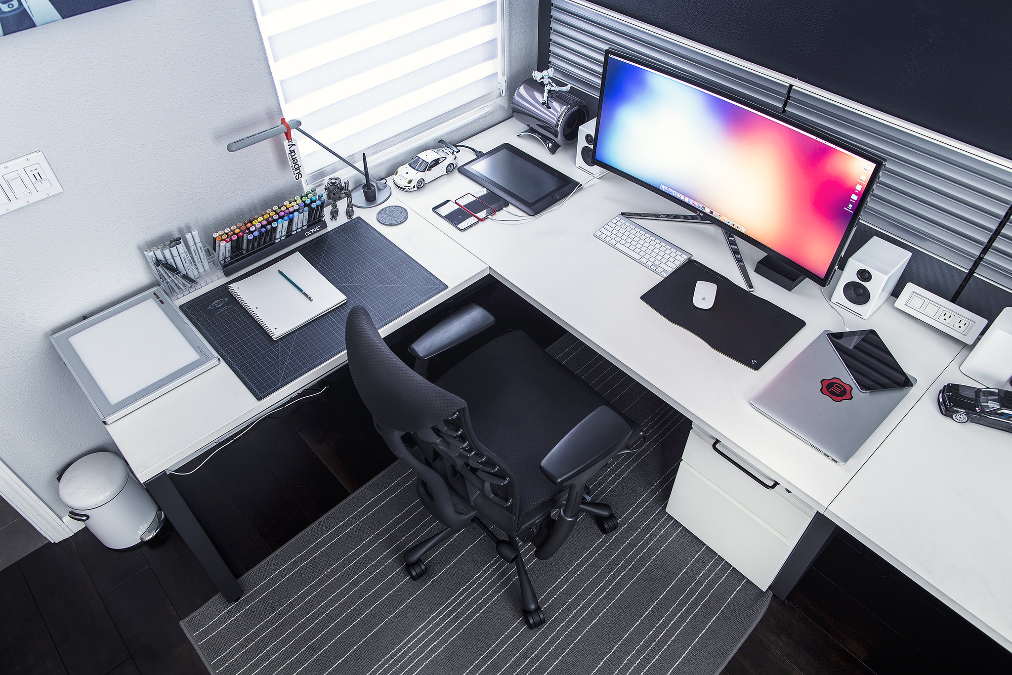 I’m a big fan of huge mousepads and you can’t get much bigger than these Grovemade Desk Pads. They look and feel great, are easy to clean, and create a nice boundary for my main work area.