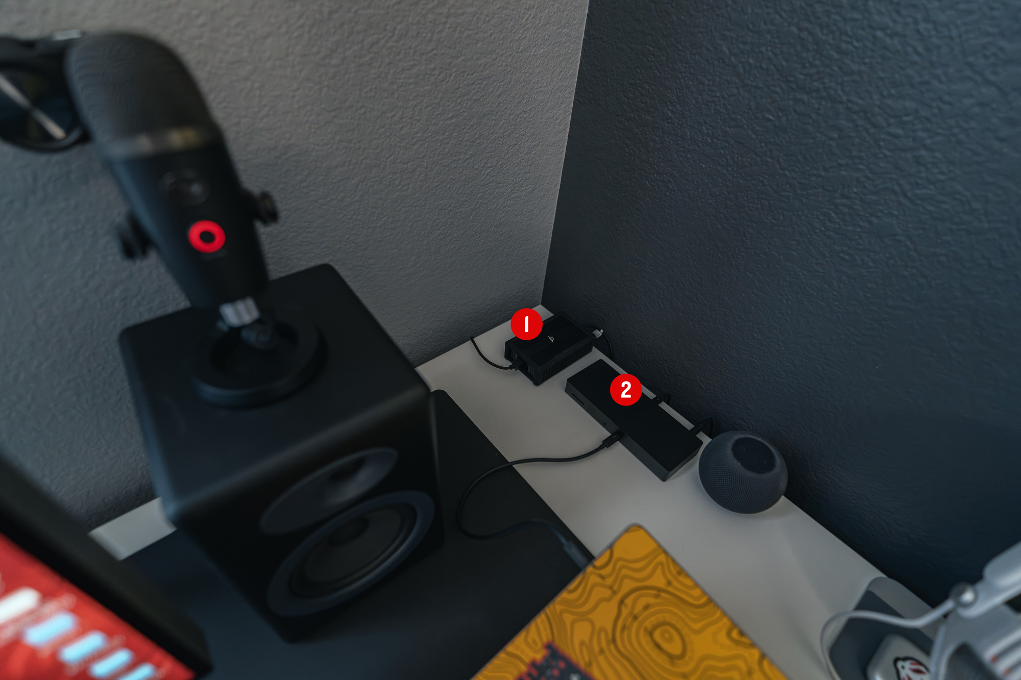 3x USB-A and 3x USB-C charging ports. It’s the messy part of my desk because I always have a variety of cables plugged in for easy charging access. Function over form here. (On top of the charger is just the chime/hub to my doorbell camera.)