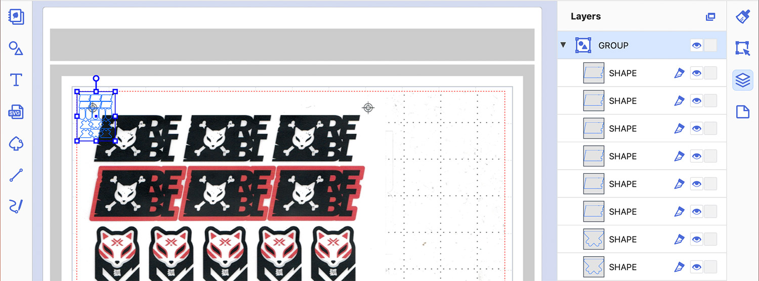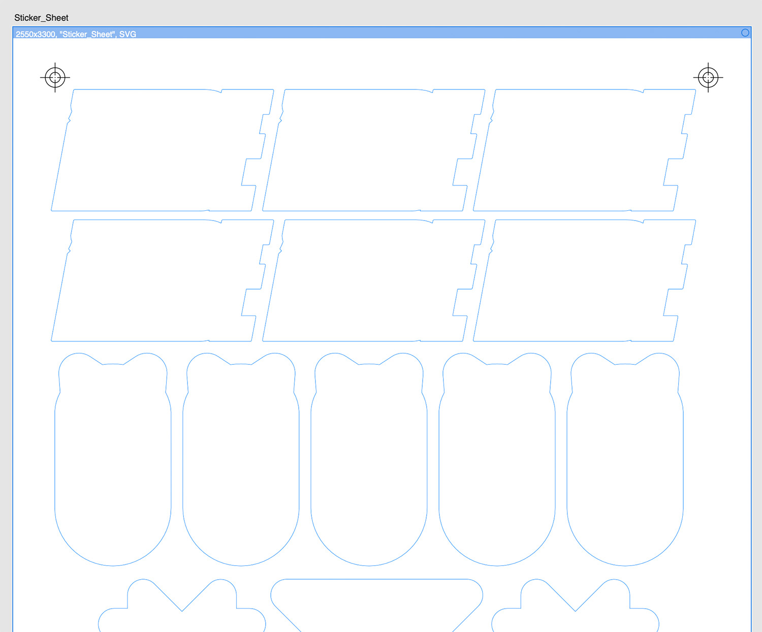 The cut line should match the actual border of your sticker. Put them all in a separate layer as a stroke. You don’t want to print these lines. You need to save these cut lines and registration marks as an 8.5x11 (letter aspect ratio) svg file to be imported later into the Brother Canvas Workspace app.