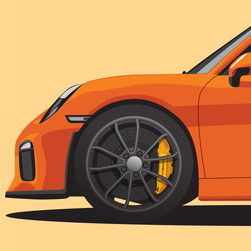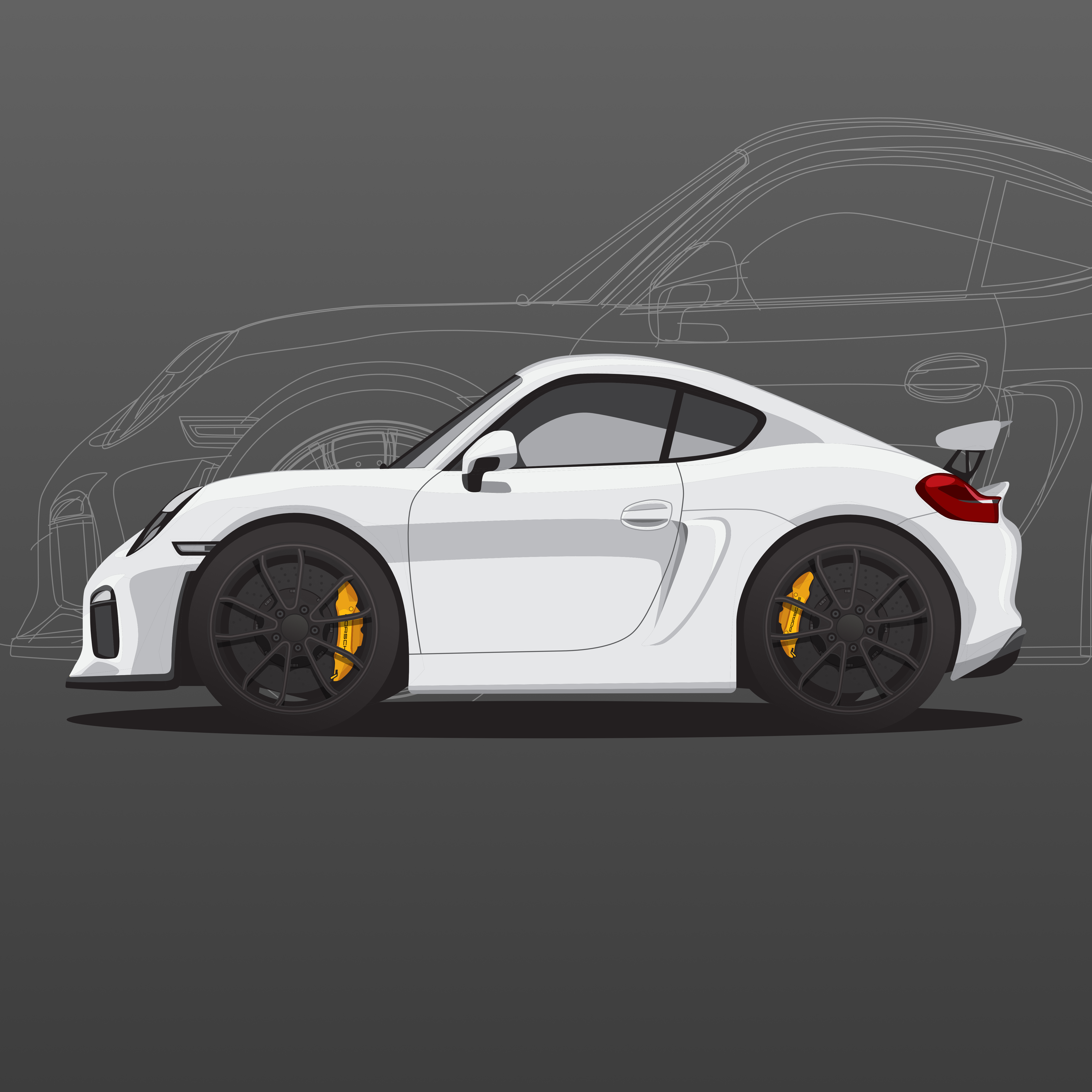 Vector artwork based on a car that I had owned, a 2016 Porsche Cayman GT4 (981) in white along with a few other colors. Year 2016 Tools Affinity Designer Client Personal