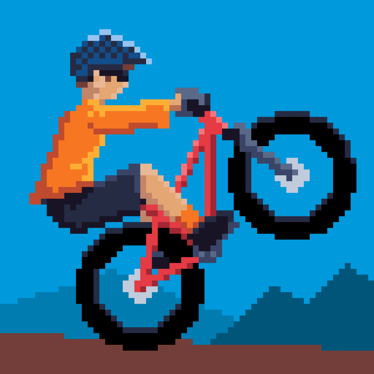 Pixel Art of a Mountain Biker designed to loosely resemble the original ExciteBike artwork. Year 2024 Tools Pixaki Client Personal