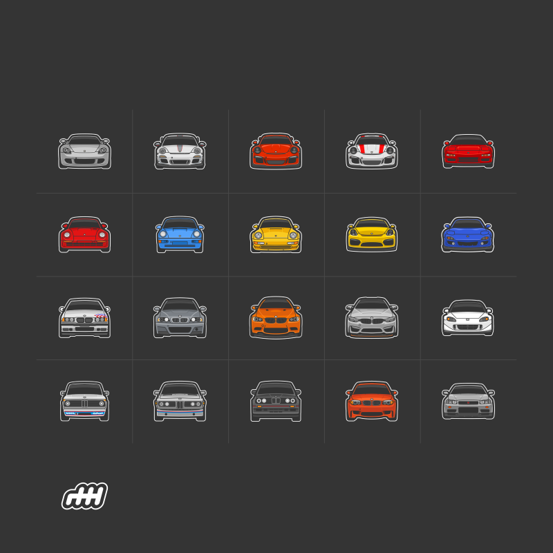 Automotive enthusiast digital stickers created for an iMessage sticker app. Year 2019 Tools Affinity Designer Client Personal